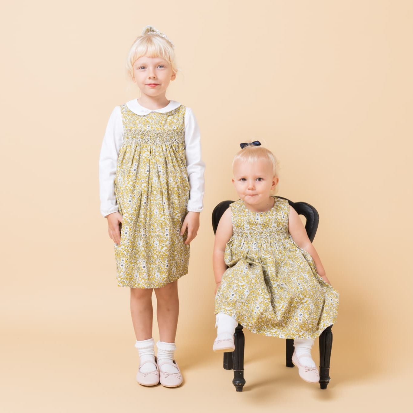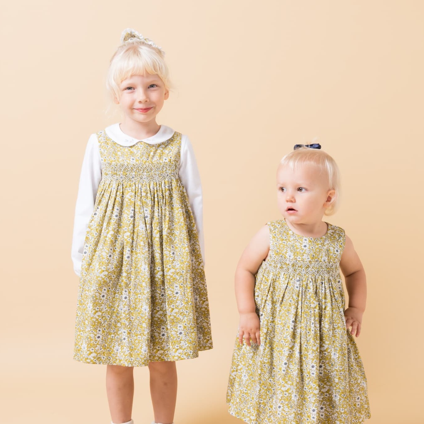 イエローフローラルプリント・ハンドスモック・ドレス_5_6歳(身長 108-114cm) [CDE1042229 5-6y]