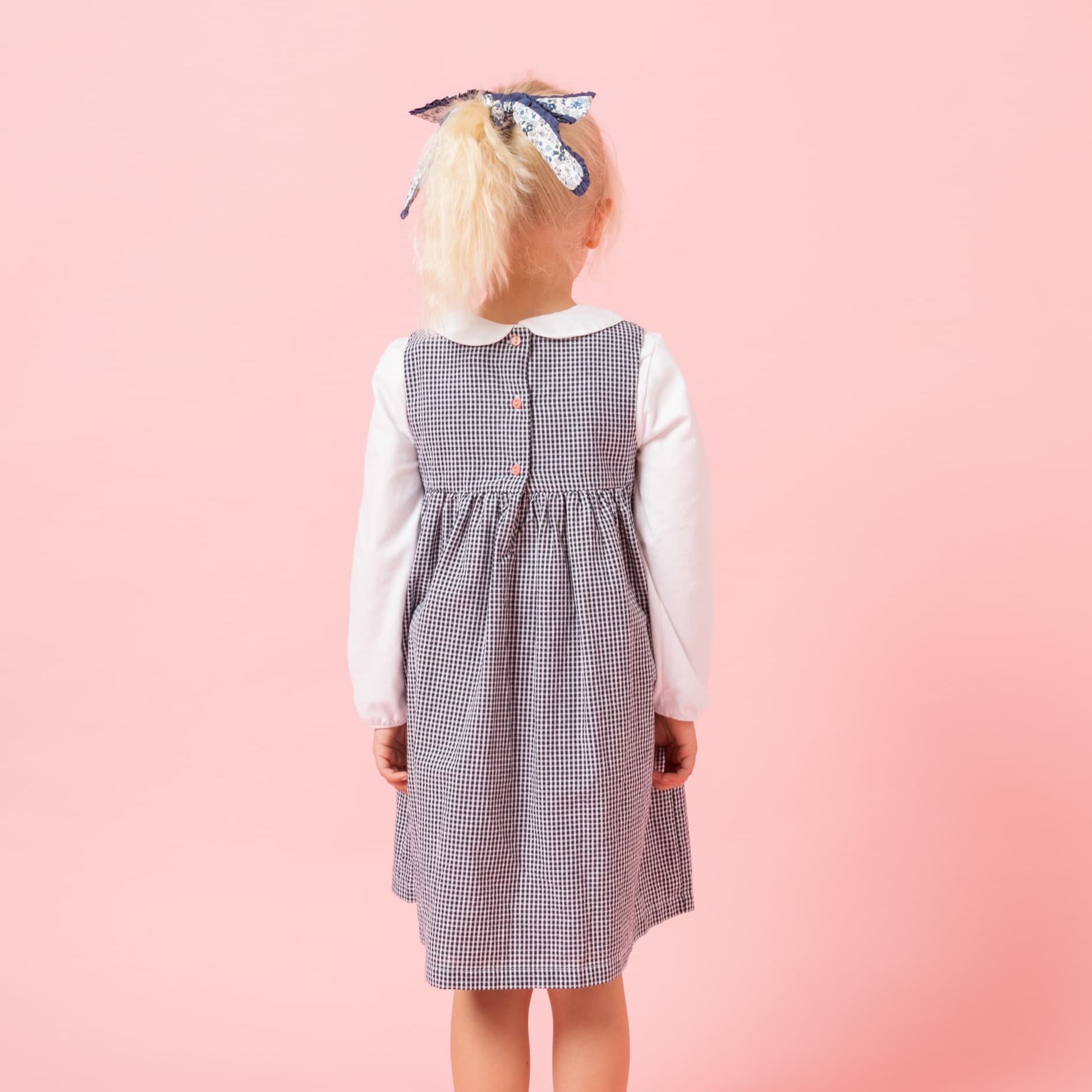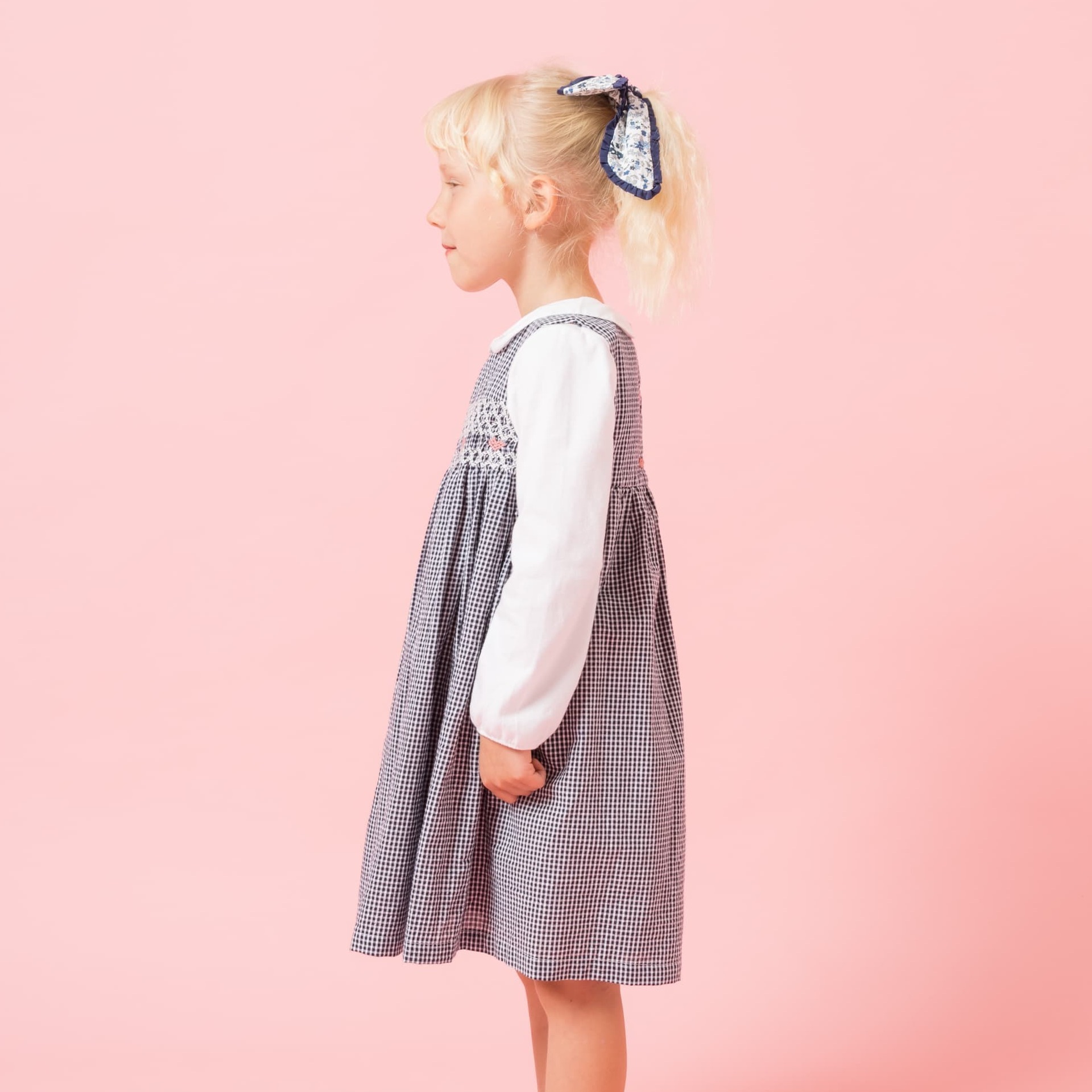 ダークブルー・ギンガムチェック・ハンドスモック・ドレス_3_4歳(身長 98-103cm) [CDE1042167 3-4y]