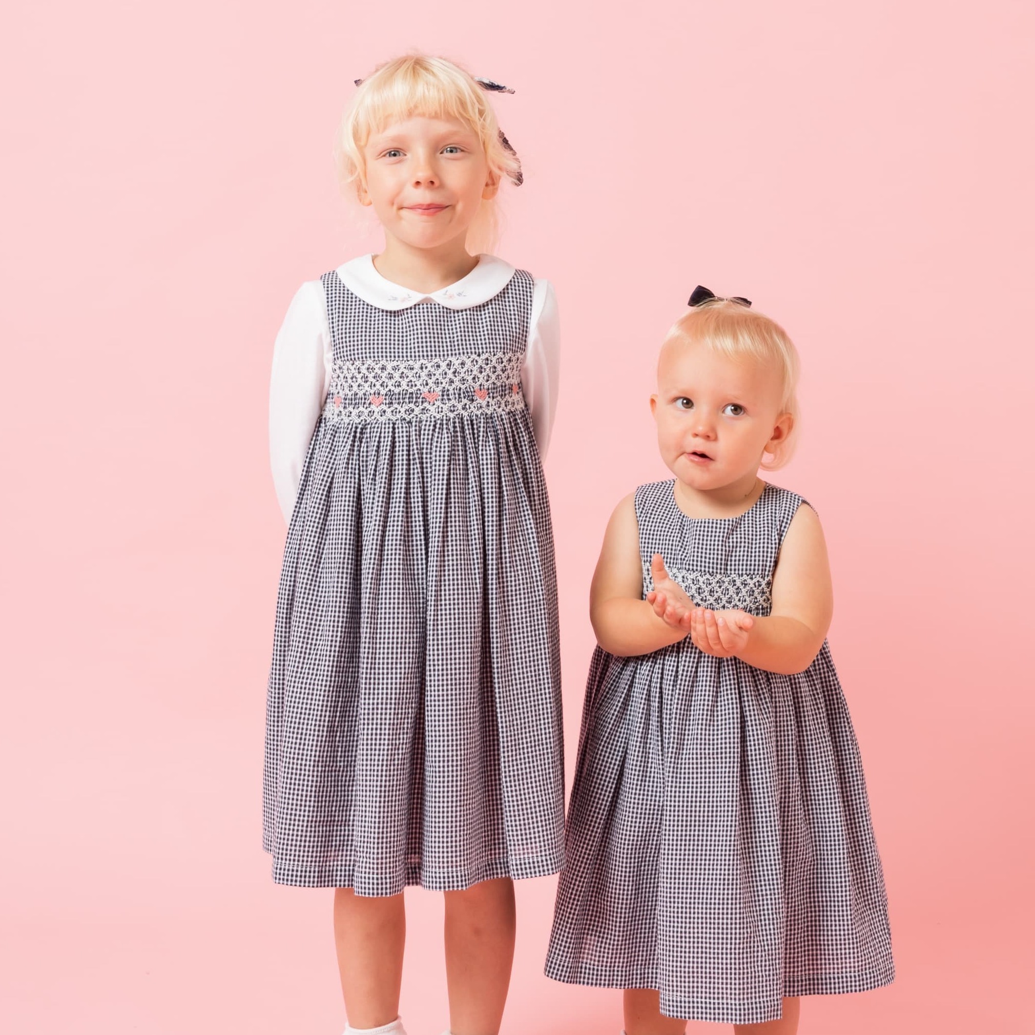 ダークブルー・ギンガムチェック・ハンドスモック・ドレス_3_4歳(身長 98-103cm)