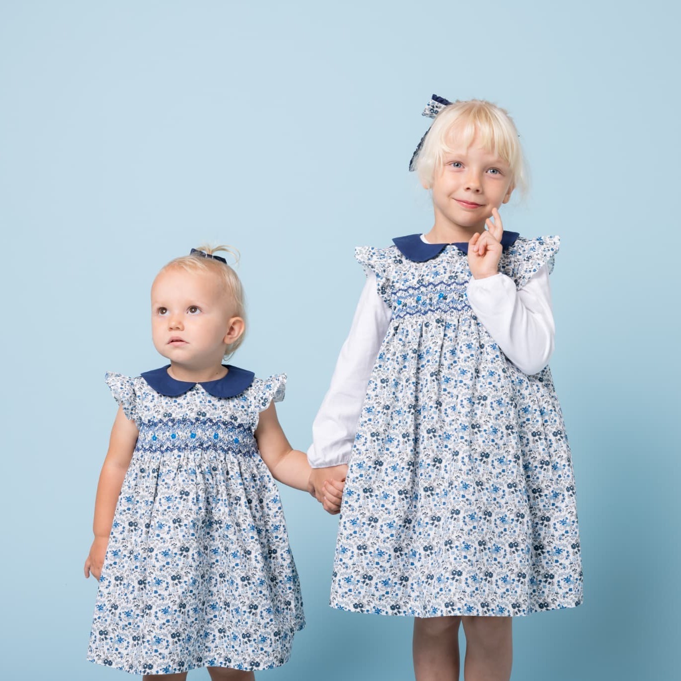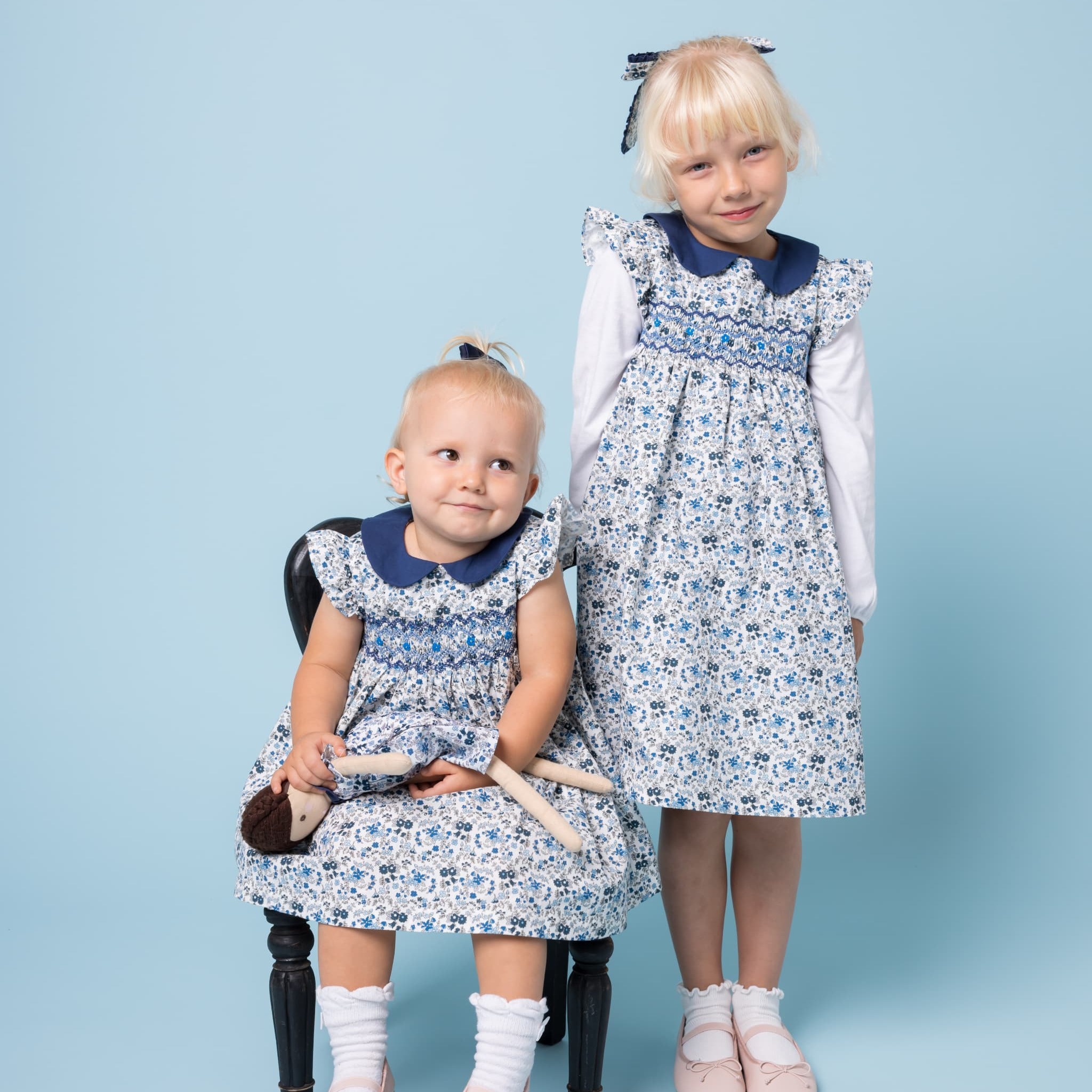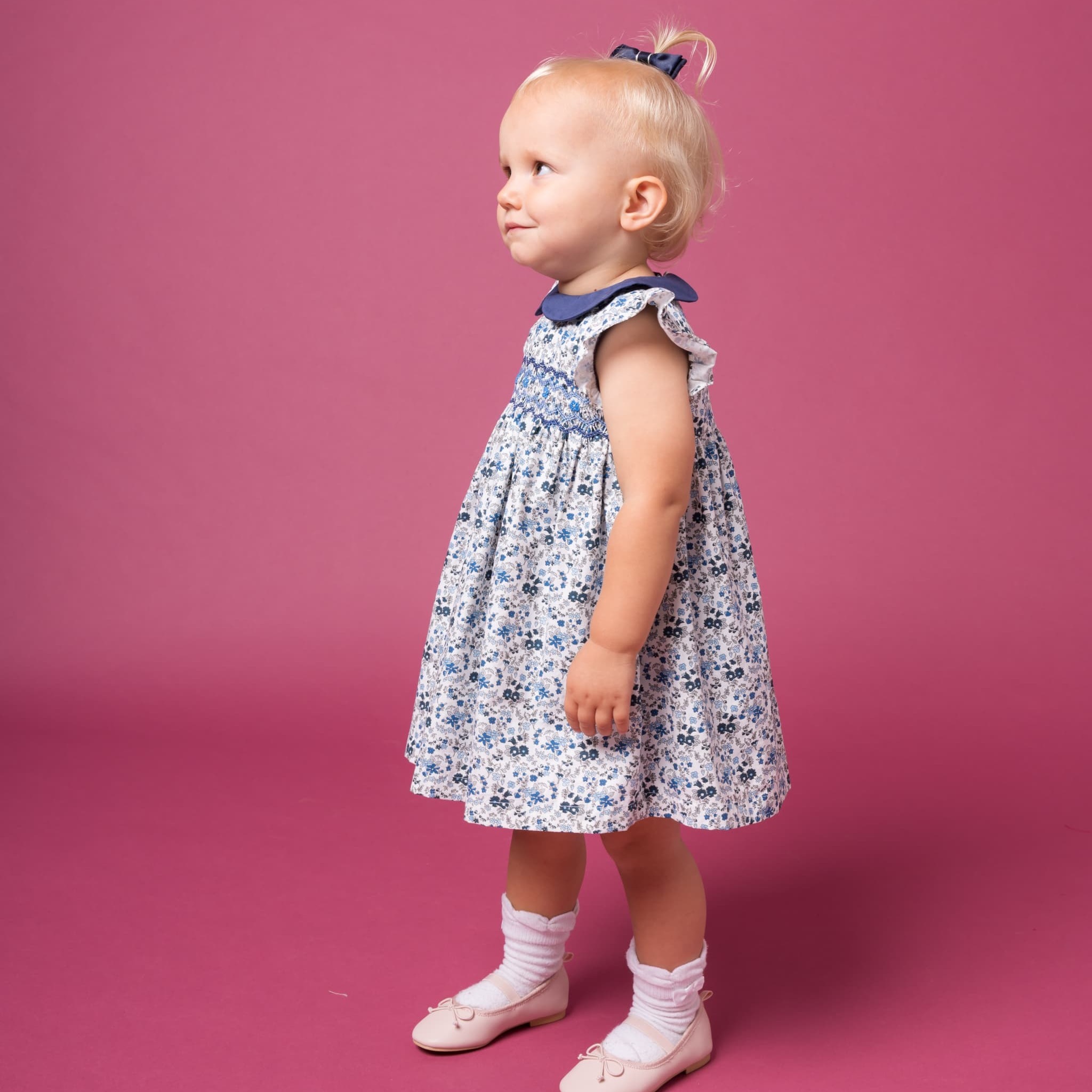 ブルーフローラルプリント・ハンドスモック・ドレス_1〜2歳(身長 85-92cm)