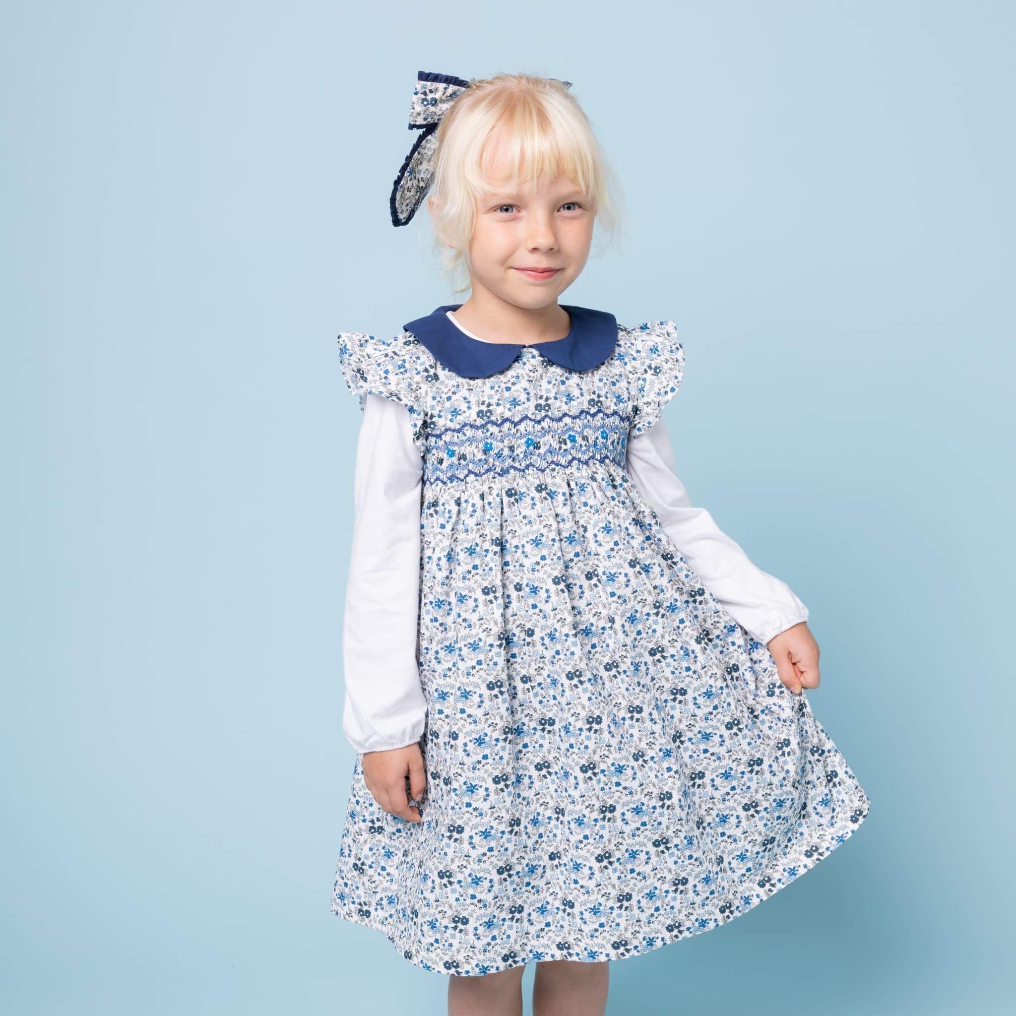 ブルーフローラルプリント・ハンドスモック・ドレス_2_3歳(身長 92-98cm) [CDE1042240 2-3y]
