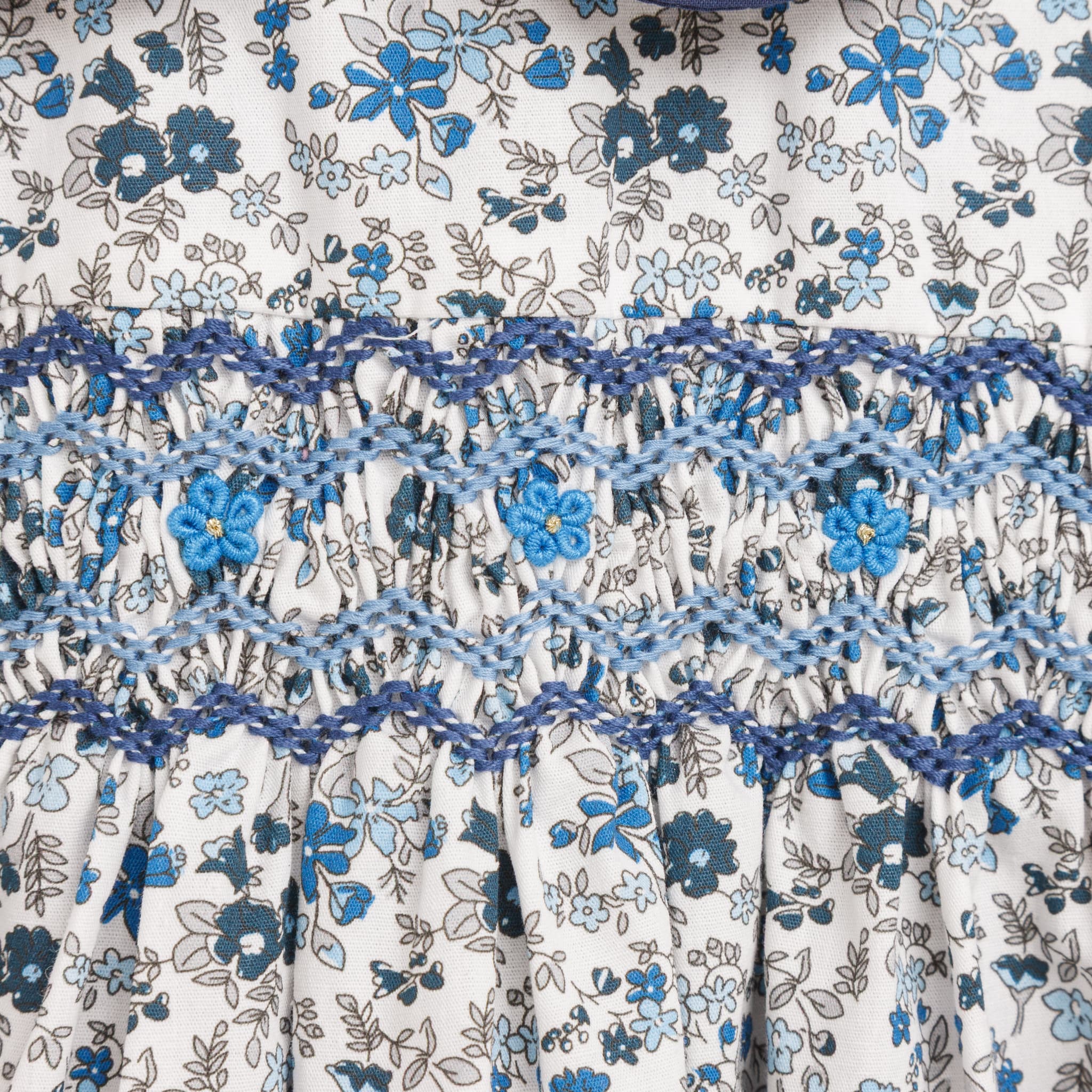 ブルーフローラルプリント・ハンドスモック・ドレス_3〜4歳(身長 98-103cm)