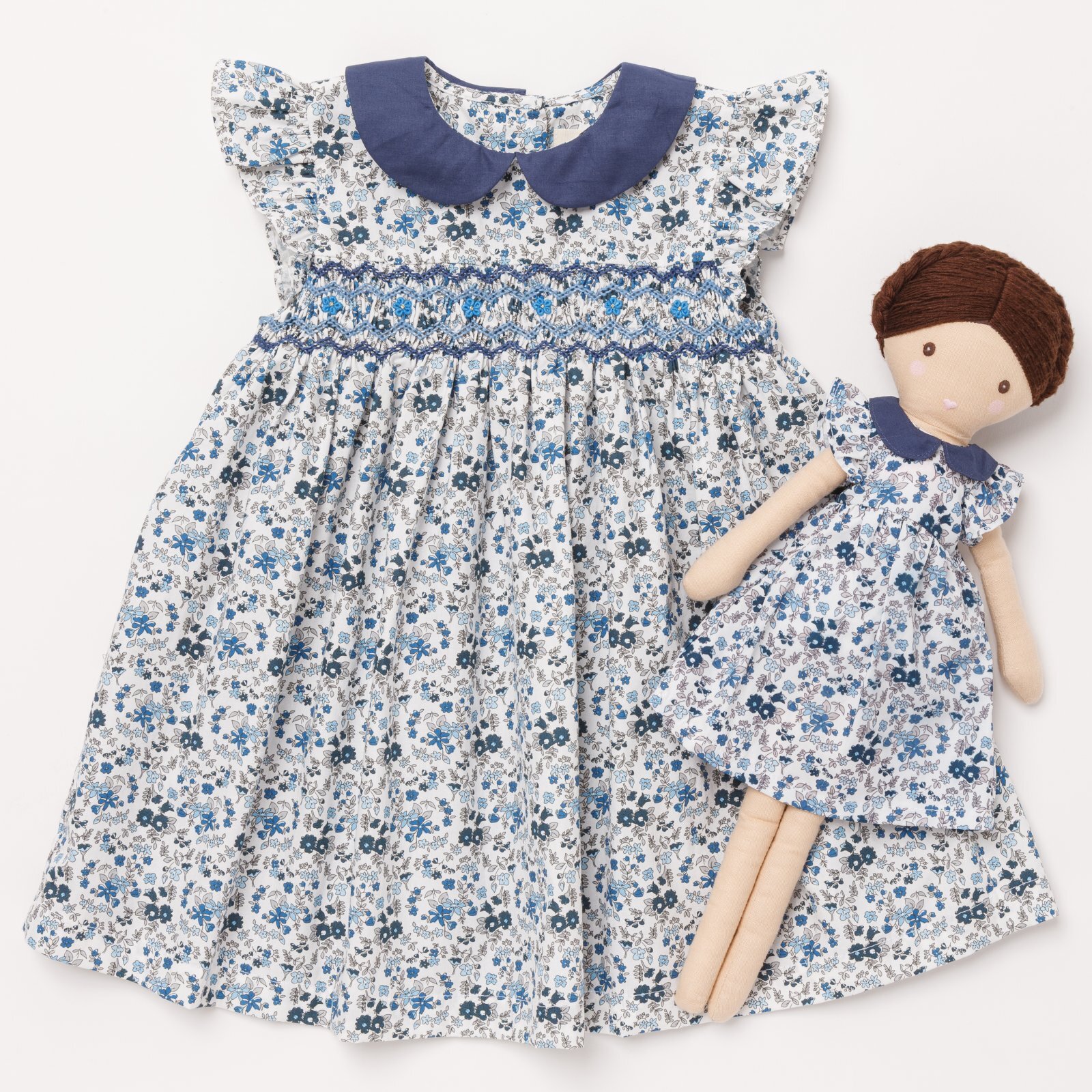 ブルーフローラルプリント・ハンドスモック・ドレス_5_6歳(身長 108-114cm) [CDE1042240 5-6y]