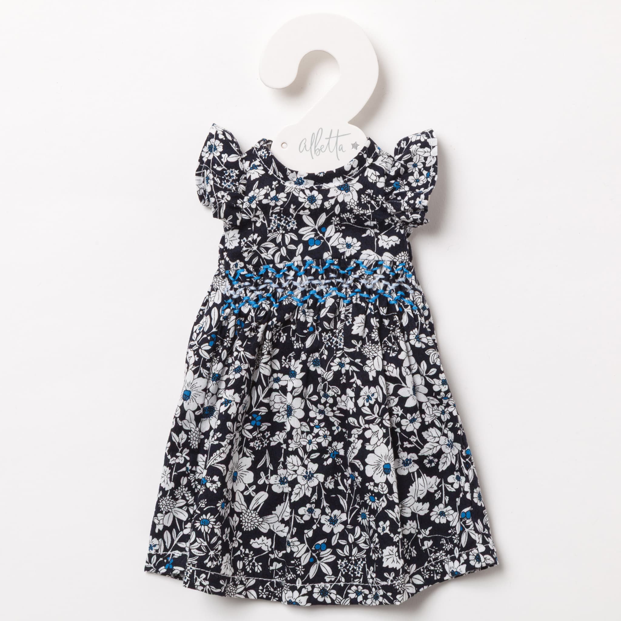【ドール用】ダークブルーフラワー・ハンドスモック・ドールドレス [DOD1042238]