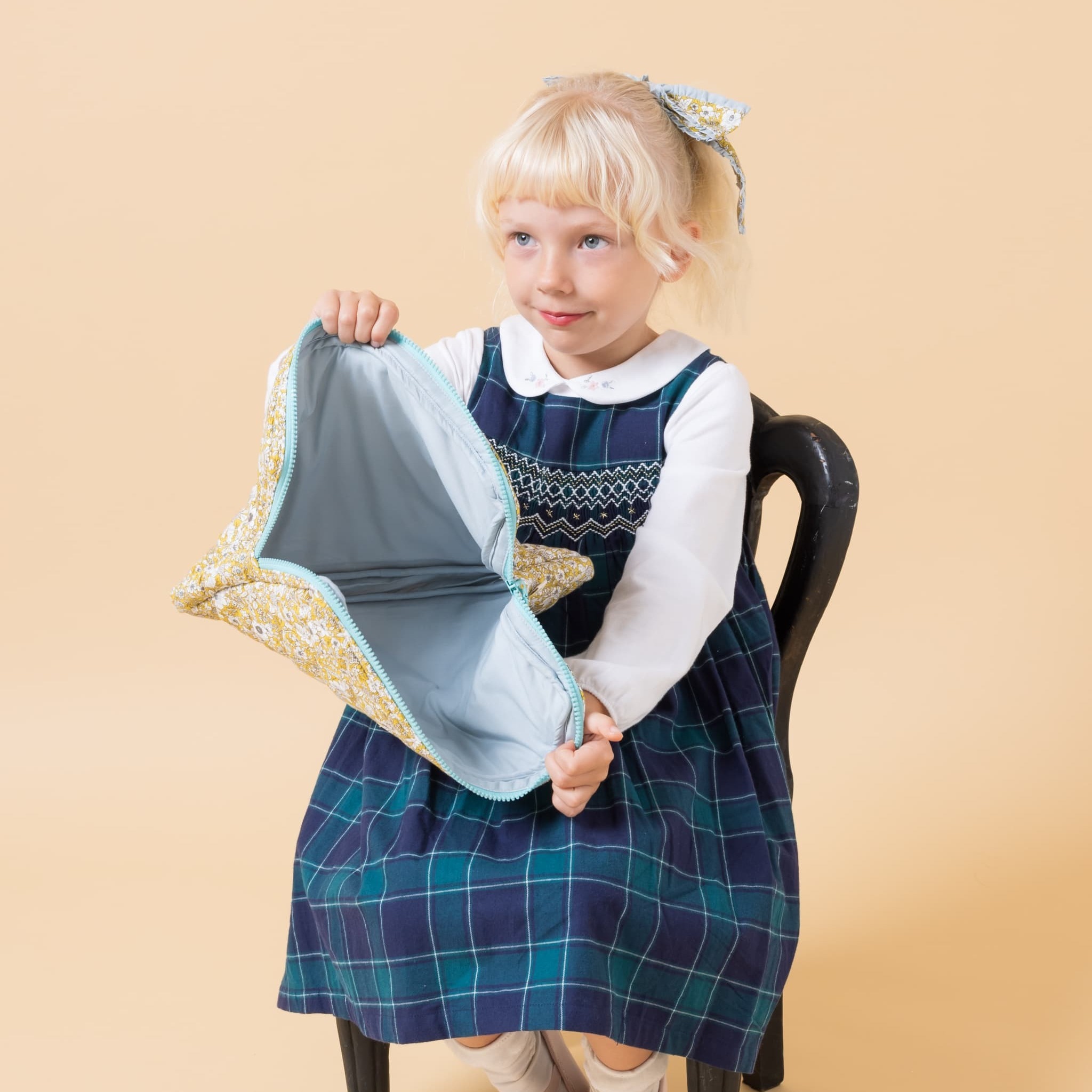 上品ながら華やかなイエローの花柄に、爽やかなブルーのファスナーが差し色になった、パソコンケースです。13インチのノートパソコンがすっぽり入り、キルティングされた丈夫な布地が、パソコンを汚れや衝撃から守ります。コンパクトなデザインなので、バッグに入れて持ち運ぶのにぴったりです。