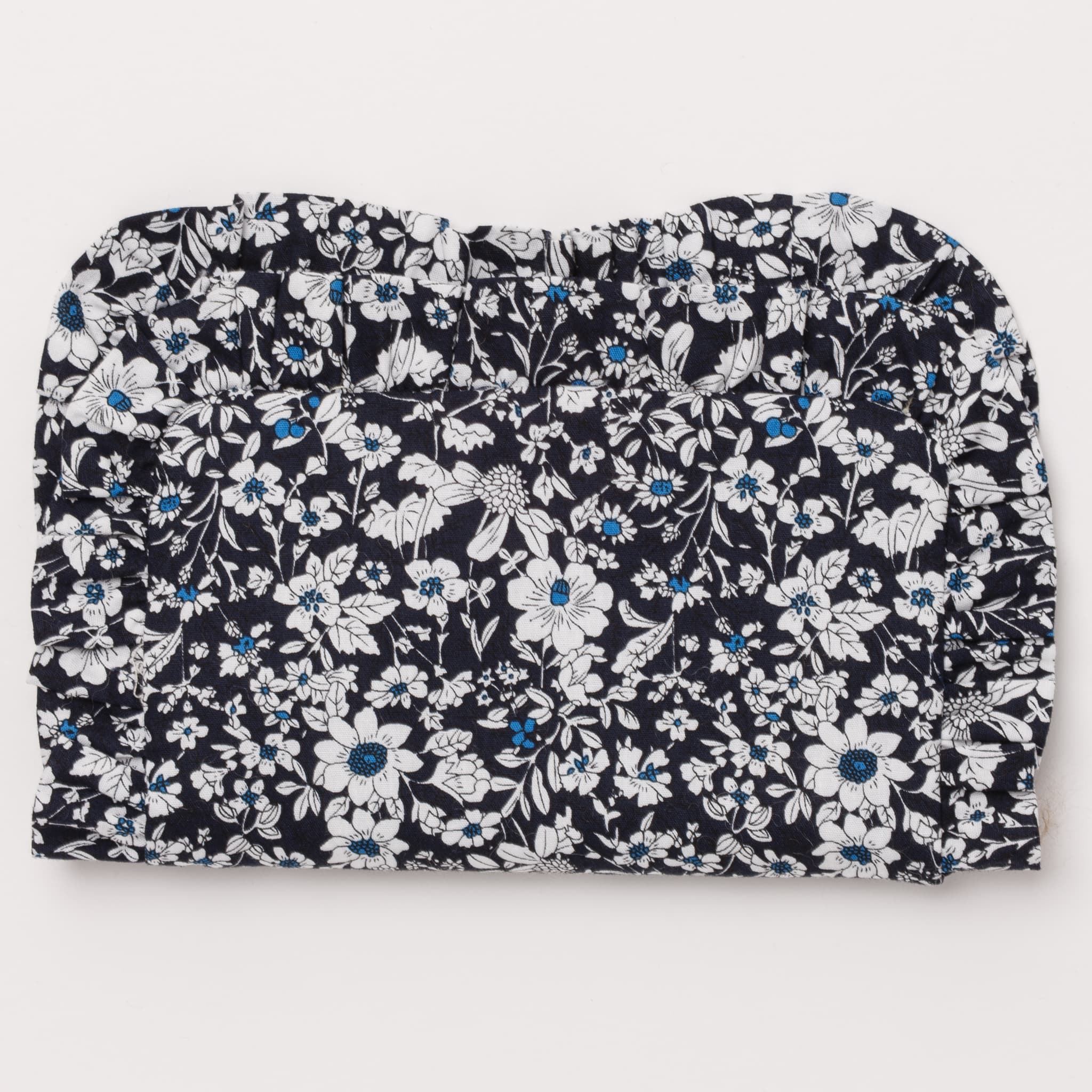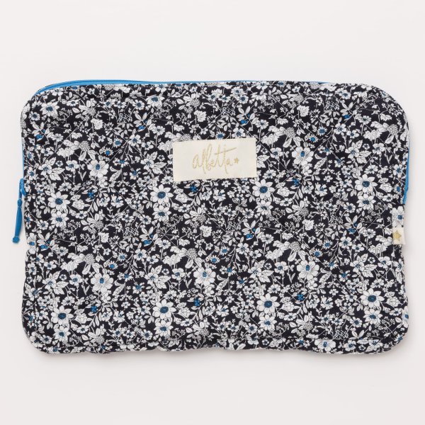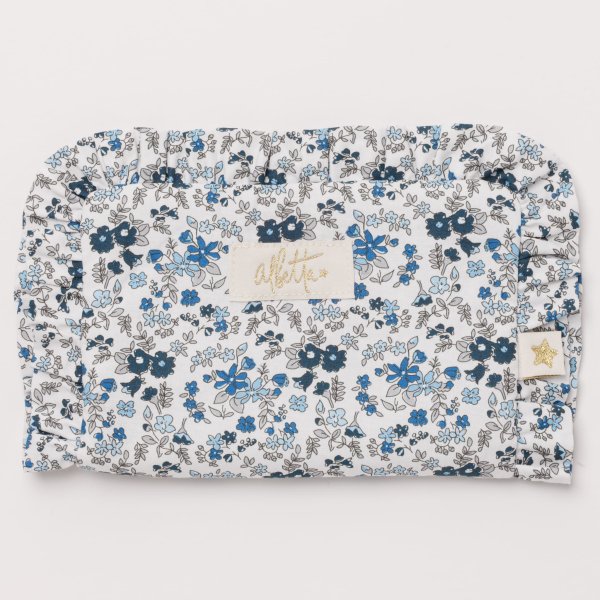 大人っぽいダークブルーの花柄模様に、ふんわりと広がる縁のデザインが印象的なジュエリーポーチ。ヘアゴムやヘアピンを見つけやすく収納できる設計になっています。内側にはファスナー付きのポケットがついており、中が二つに仕切られていて機能性抜群です!