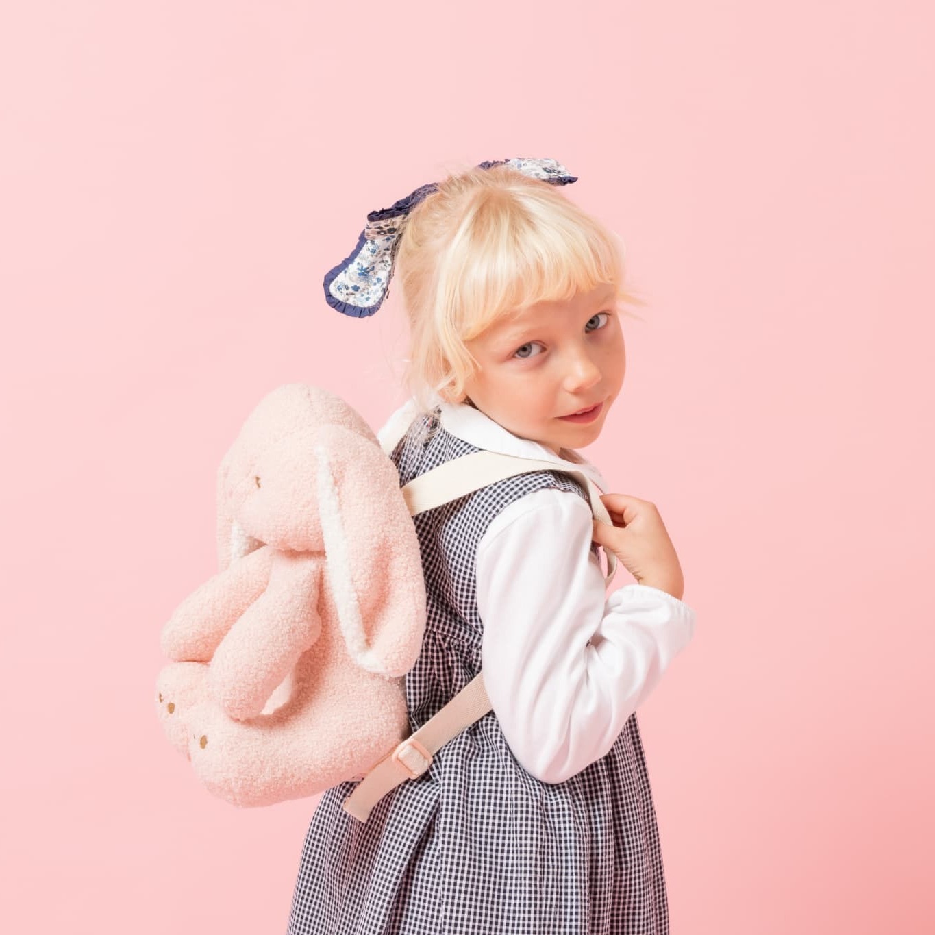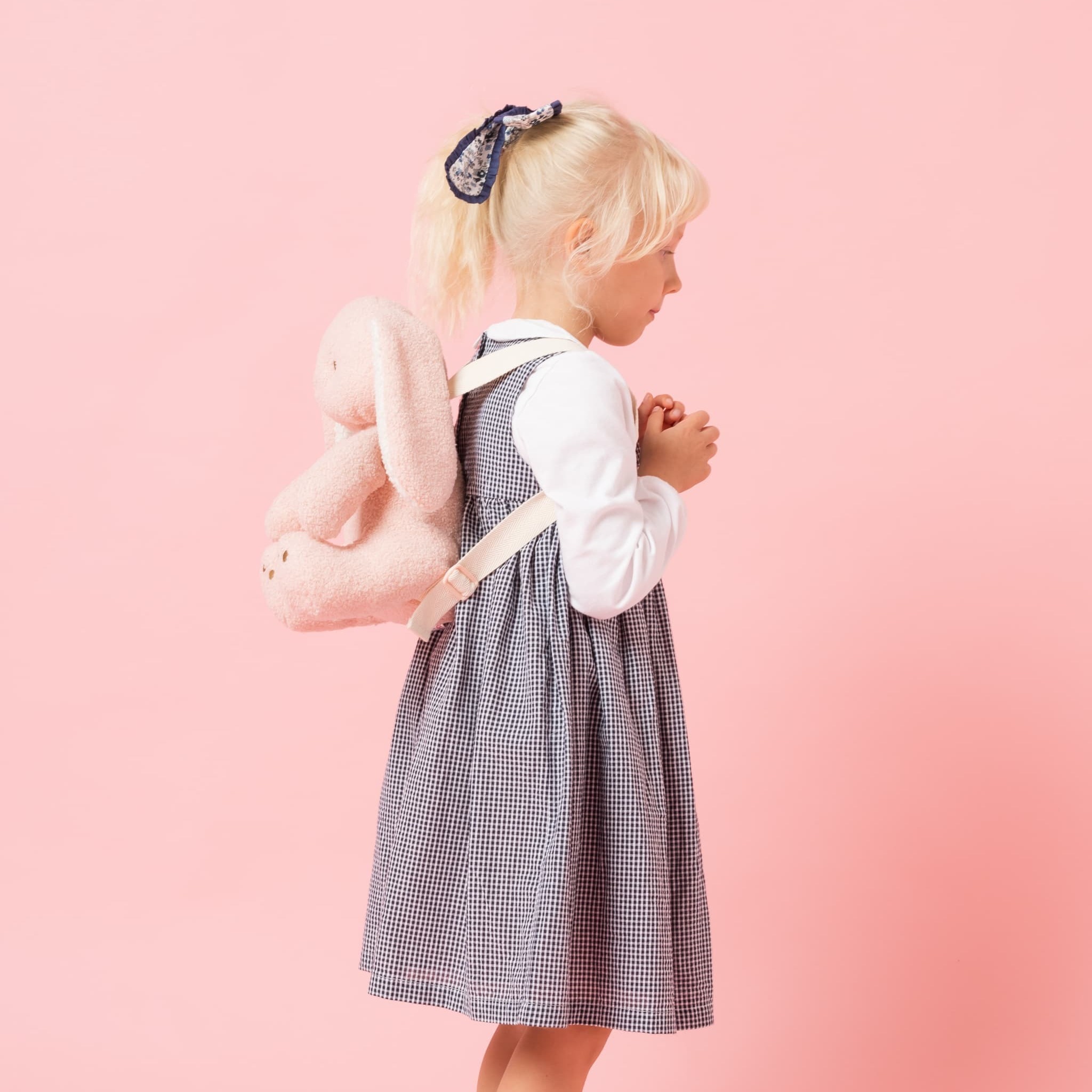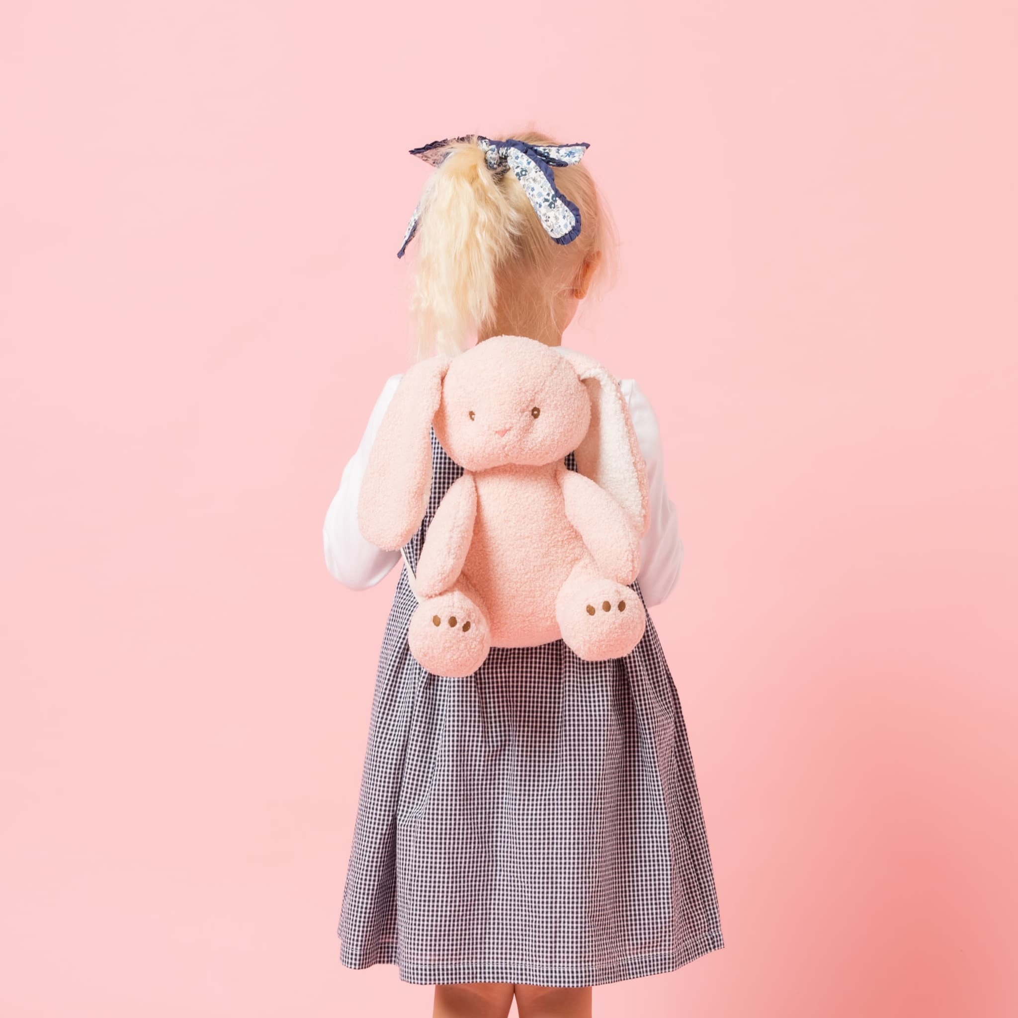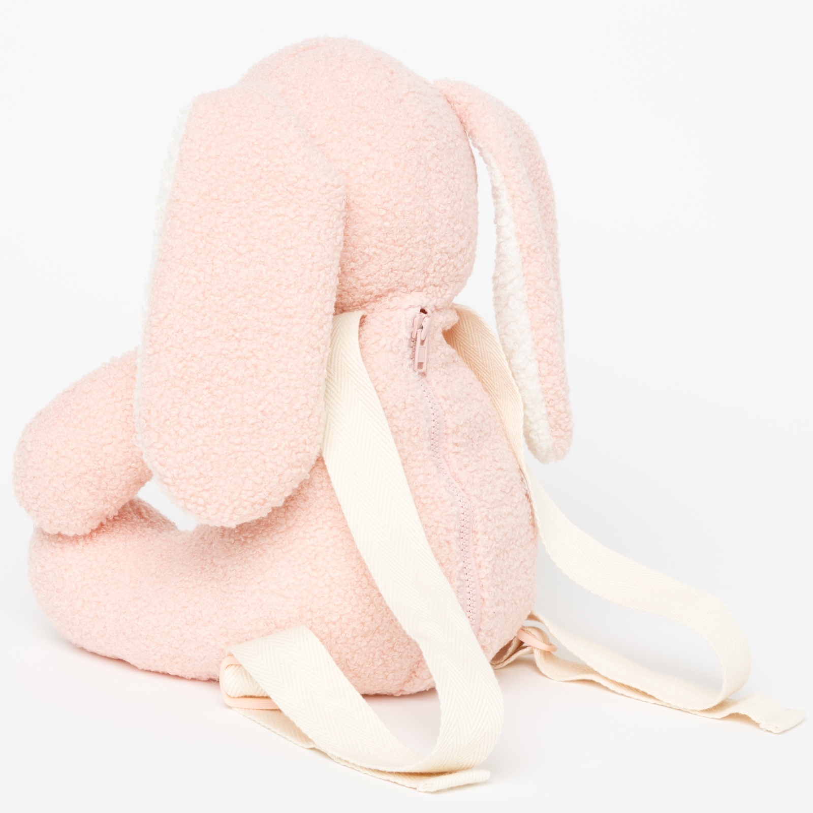 優しいピンクでふわふわの手触りが嬉しい、うさぎの形のリュックサックです。大きなたれみみがとっても可愛らしいデザインで、背負っているだけでお出かけがより楽しくなるアイテムです。中にはハンカチやティッシュなどを収納することができ、初めて自分でバッグを持ってお出かけする小さなお子様に、特におすすめのバッグです!