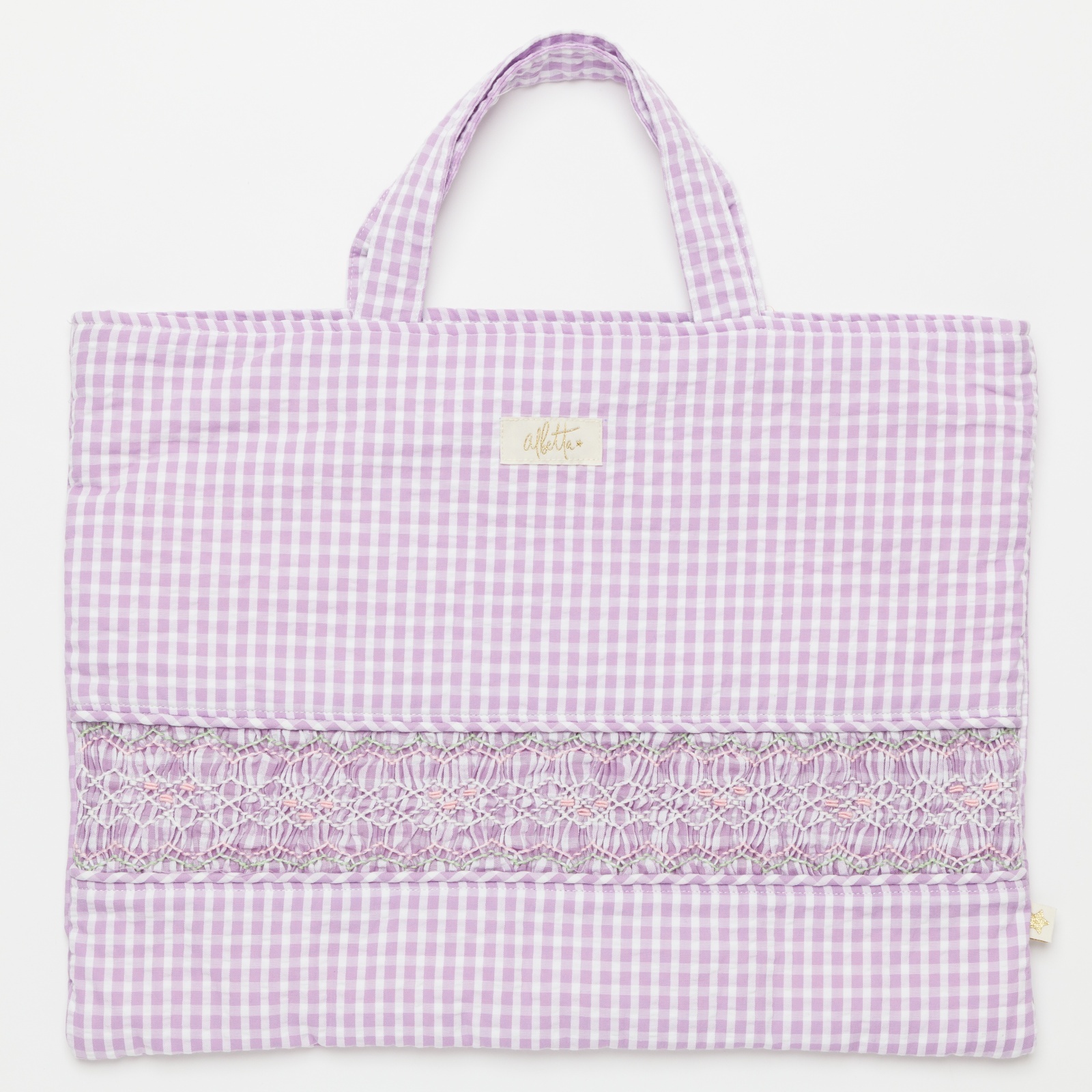 ライラックギンガム・ハンドスモッキング・バッグ