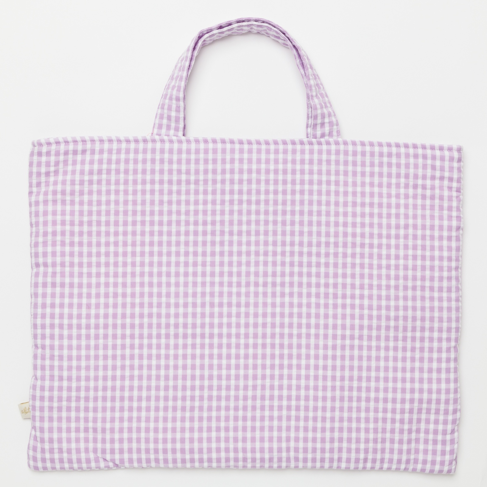 優しいラベンダーカラーのギンガムチェックに、繊細なスモッキング刺繍が映える大人可愛いデザインのバッグ。柔らかなキルティング素材を使用しているため中身を優しく保護し、ノートや小物を入れるサブバッグとしても非常に優秀です。手仕事の温もりを感じる上品な仕上がりで、通園・通学などの日常使いからお出かけまで、幅広いシーンに華を添えてくれます。※ドール・ドールドレスは別売となります。
