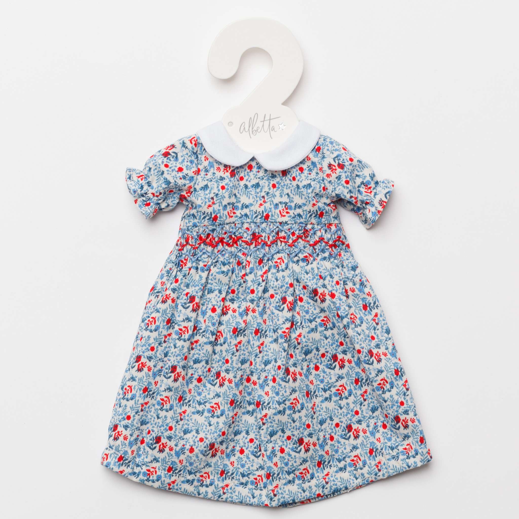 【ドール用】ディッツィーブルー・フローラルプリント・ハンドスモッキング・ドールドレス