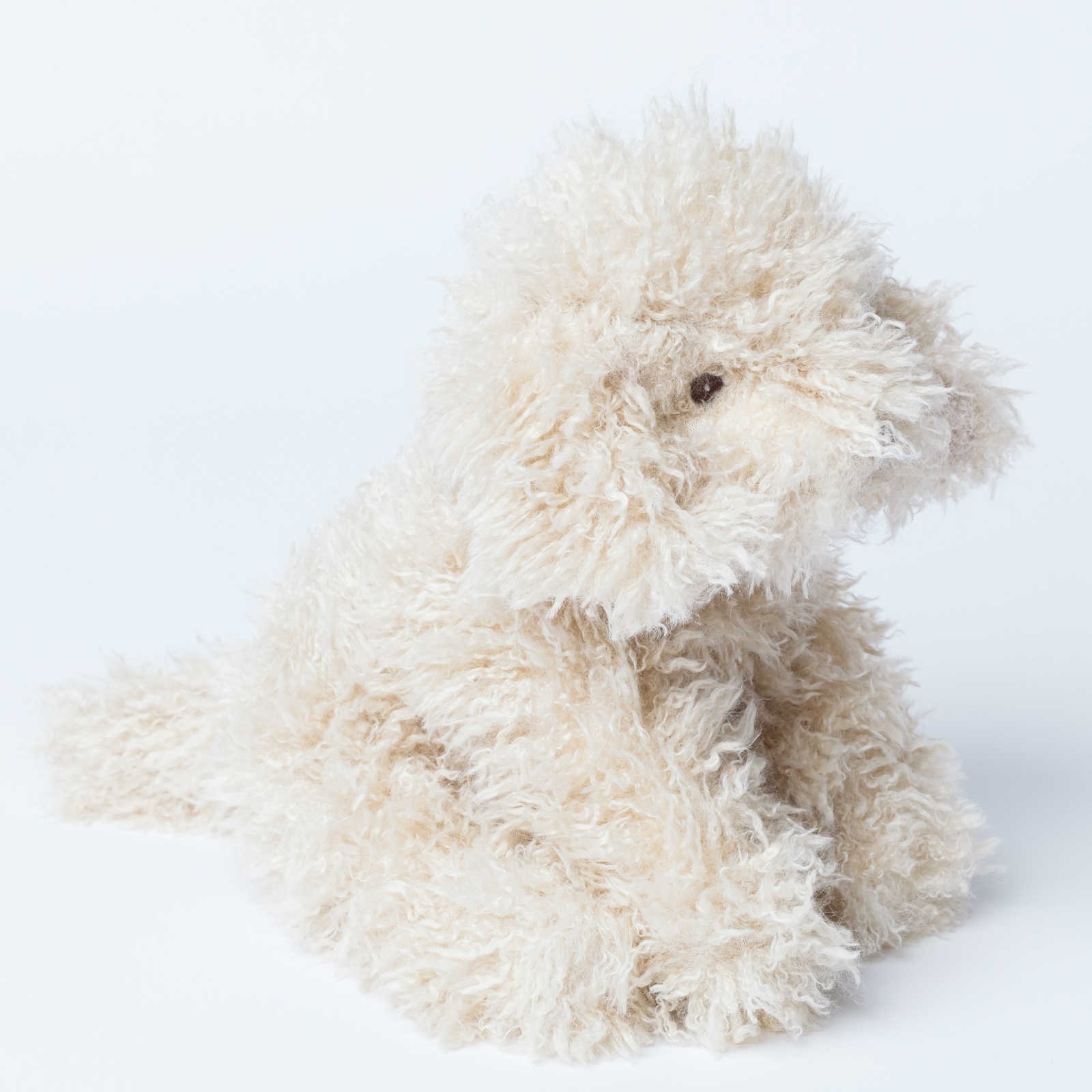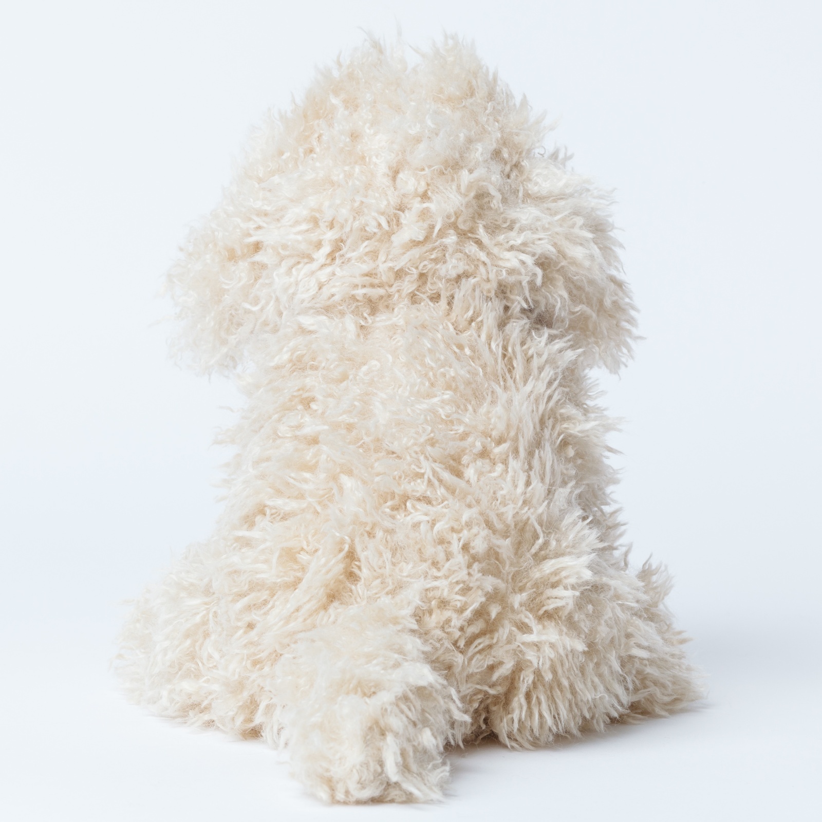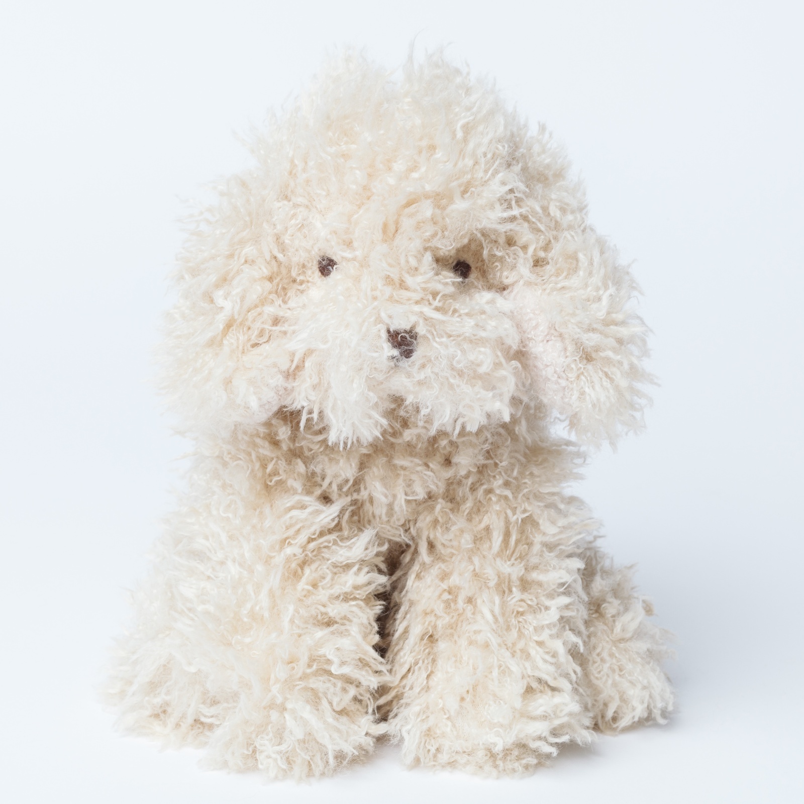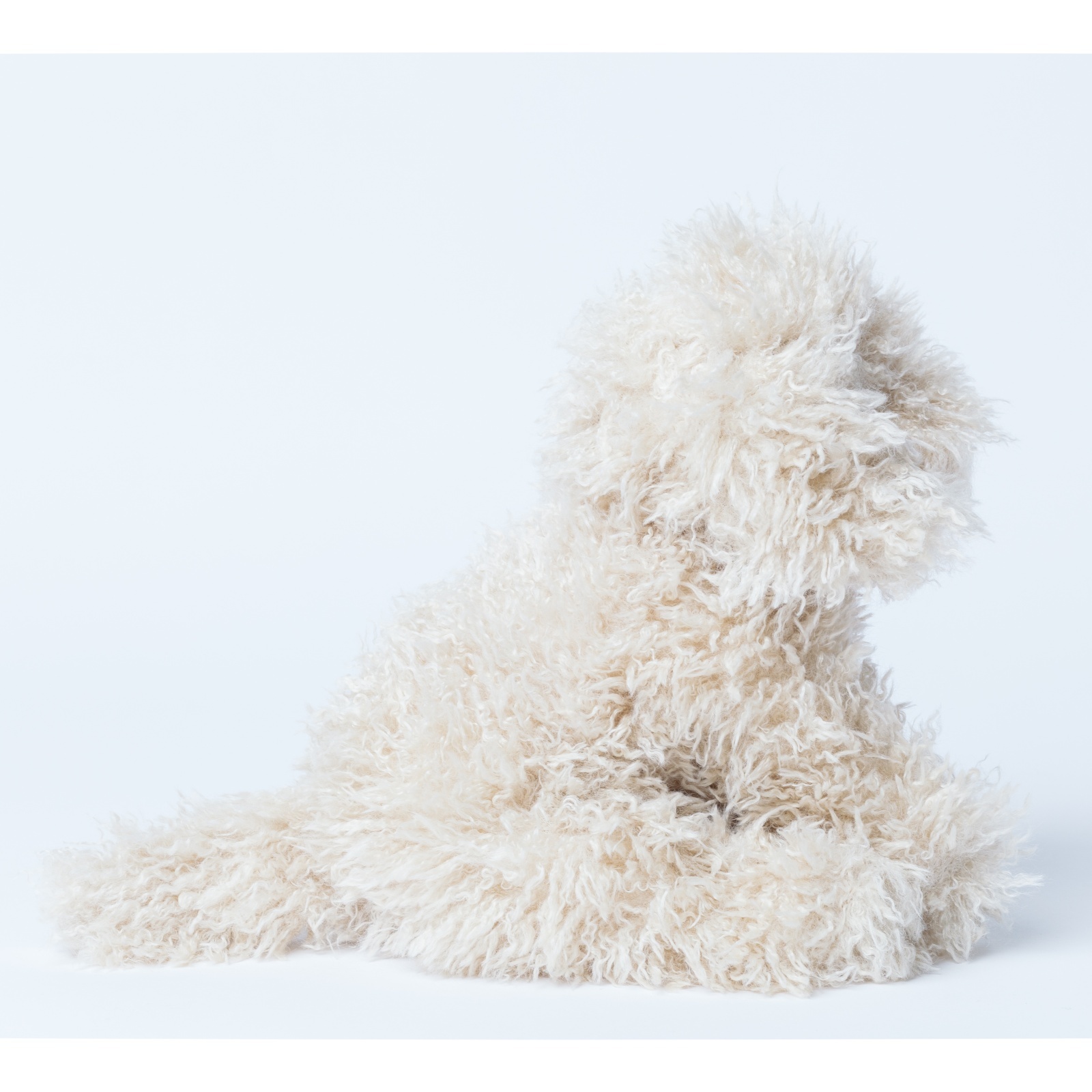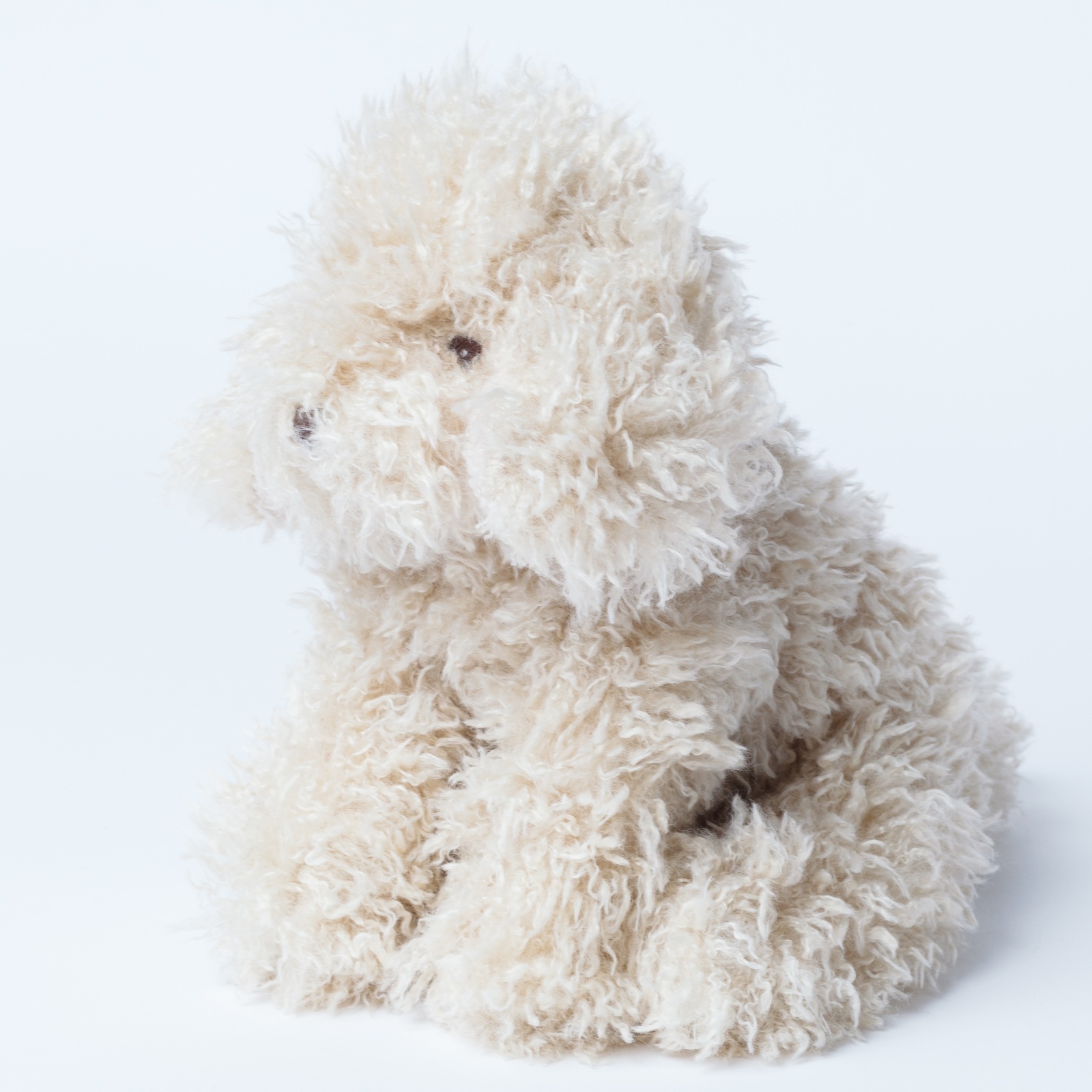 ミルクティーのような優しいベージュカラーと、くるくるとした長い毛並みがとっても愛らしいトイプードルです。つぶらな瞳がちょこんと覗く姿が可愛らしく、お子様がぎゅっと抱きしめるのにちょうどいいサイズ感です。お部屋に座っているだけで心がほっこり癒される、毎日を一緒に過ごす大切なお友達になります。