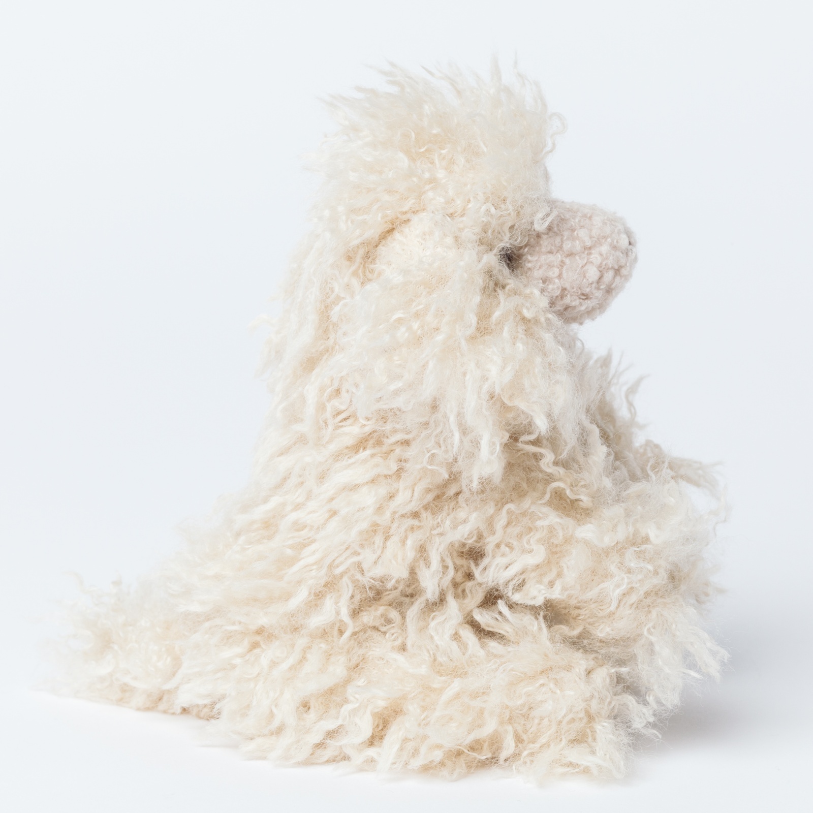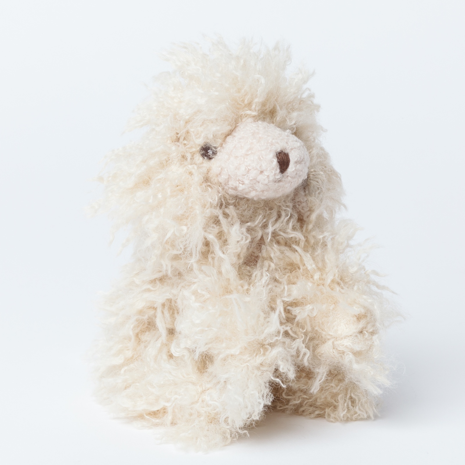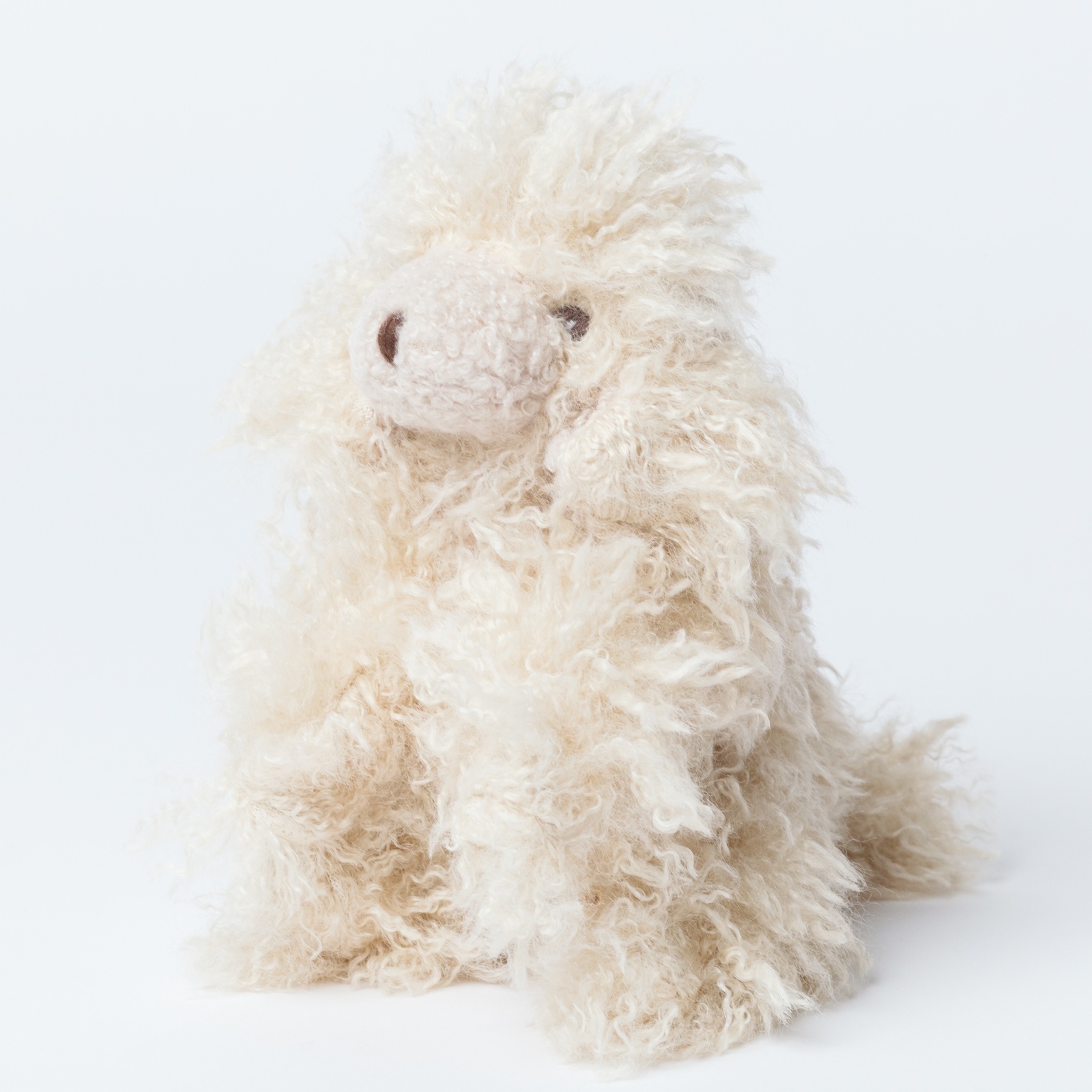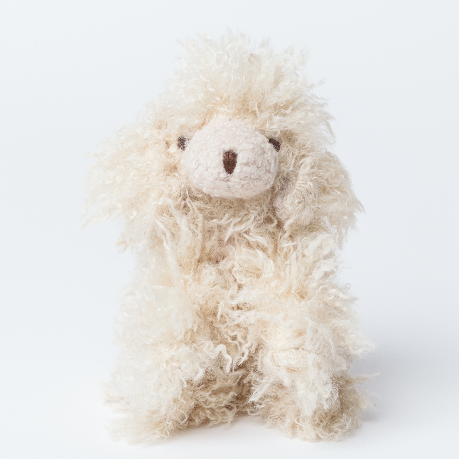 ミルクティーのような優しいベージュカラーと、くるくるとした長い毛並みがとっても愛らしいトイプードルベビーです。つぶらな瞳がちょこんと覗く姿が可愛らしく、お子様がぎゅっと抱きしめるのにちょうどいいサイズ感です。お部屋に座っているだけで心がほっこり癒される、毎日を一緒に過ごす大切なお友達になります。