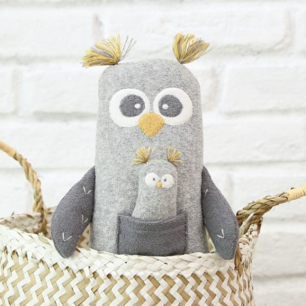大人もインテリア小物として部屋に置き場所を見つけたくなるような、なんともかわいいフクロウのラトル。