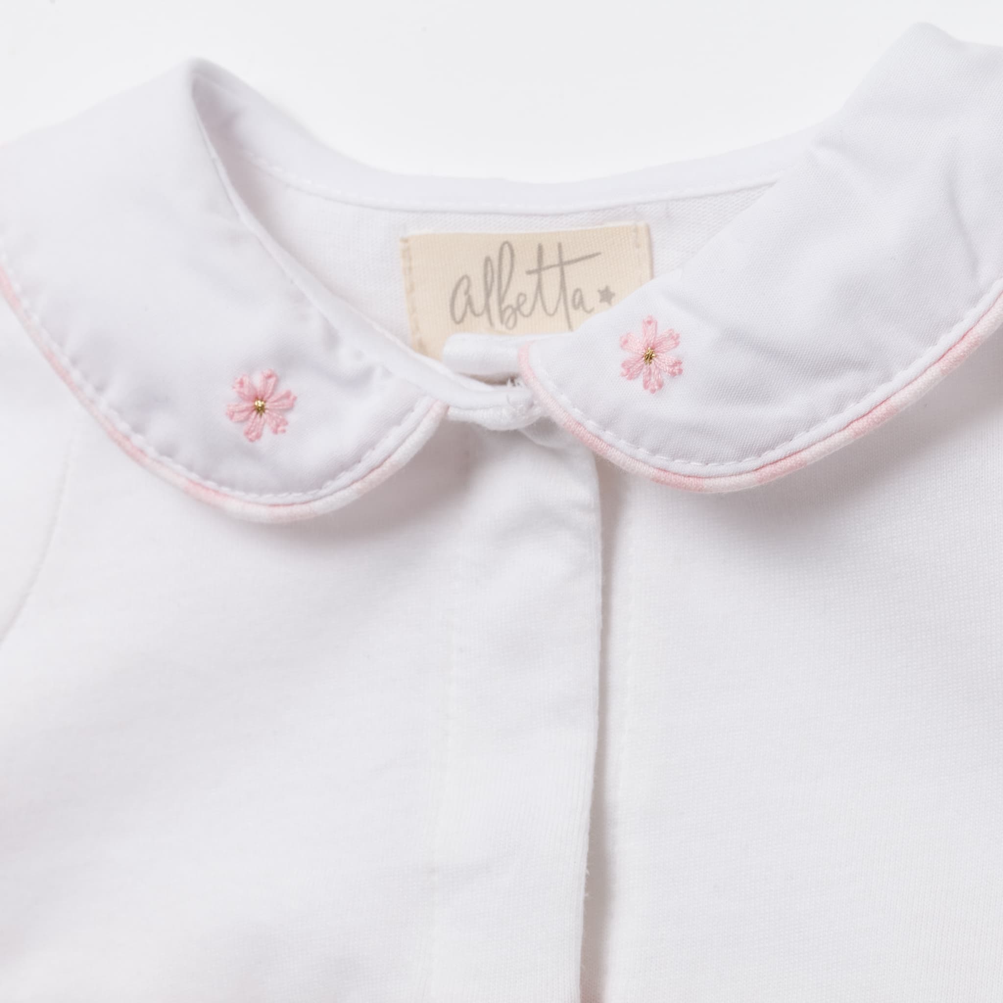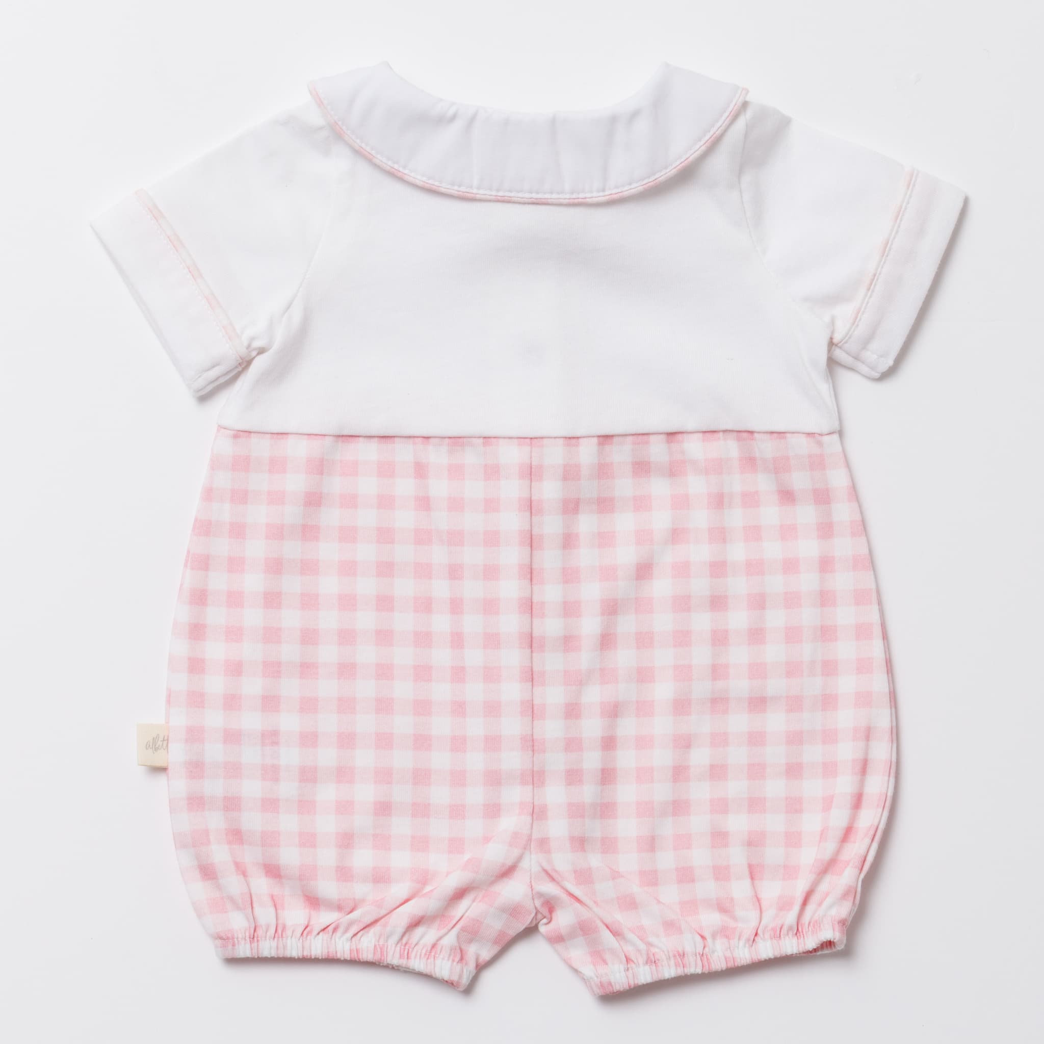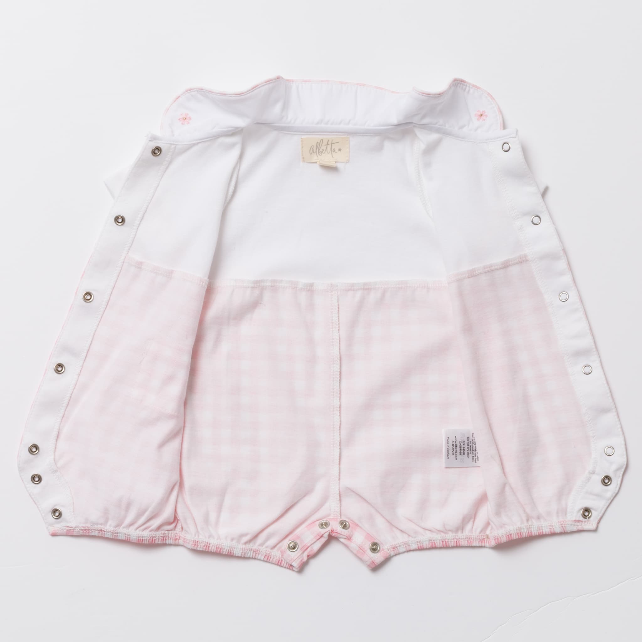 デイジー襟刺繍・ピンクギンガムロンパース_70cm