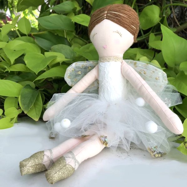 小さな銀の羽もついたフェアリードール。ふんわりしたピンクのドレスをまとったかわいい妖精です。