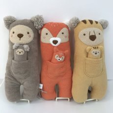 ポケットから取り出して遊べるラトルもかわいいキツネの親子です。