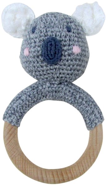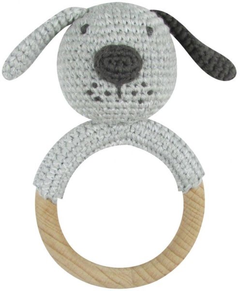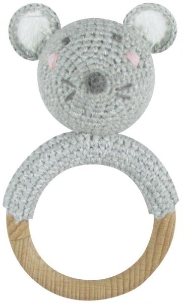 動物のブタをモチーフにして作られたかぎ針編みのガラガラ。