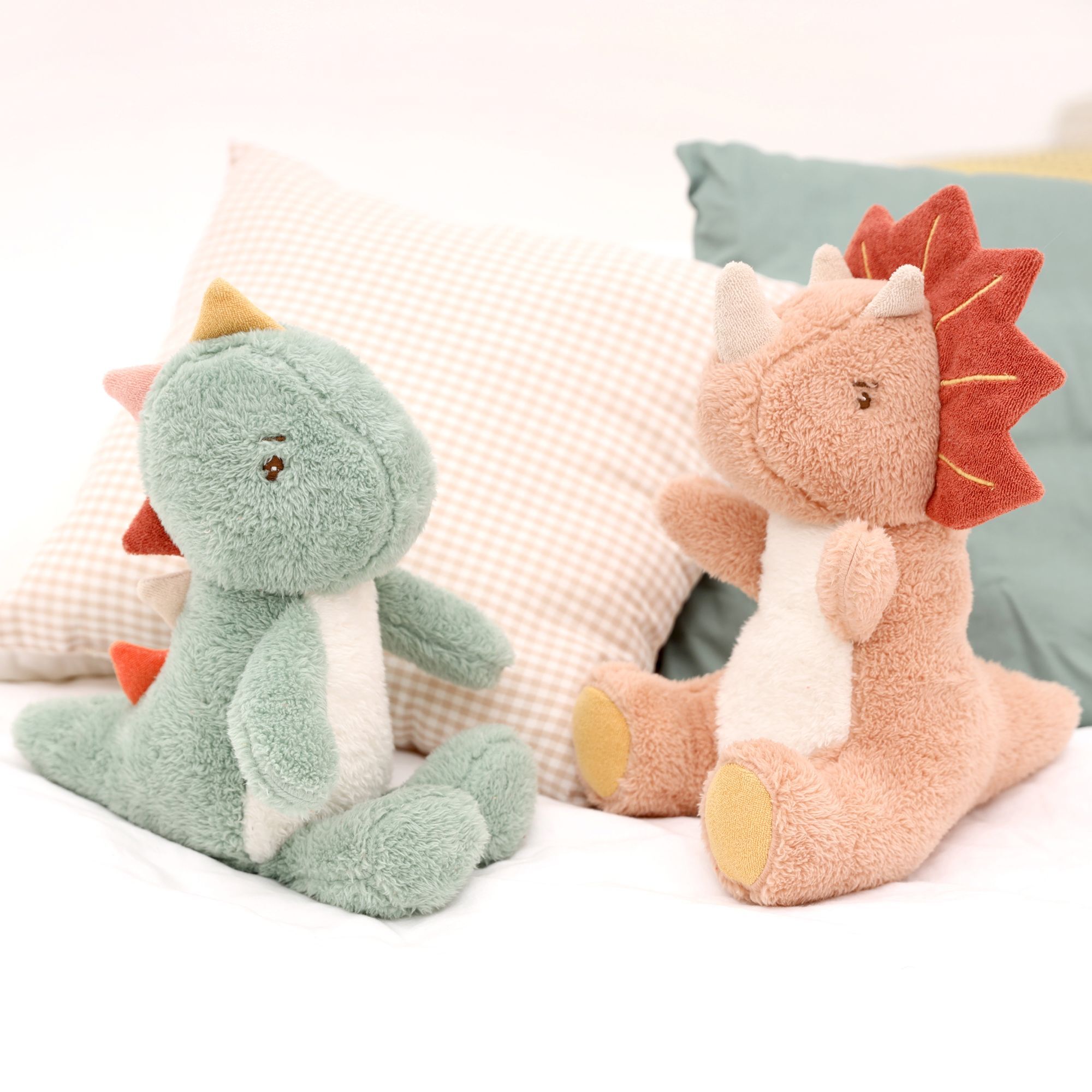 環境に優しいリサイクルファーを使用した、トリケラトプスのおもちゃです。優しい色合いとフォルムで、お子様に寄り添ってくれます。リサイクルファーは手触りの心地よさが特徴で、手洗いできる素材のためお手入れも簡単!いつでも清潔に保つことができます。