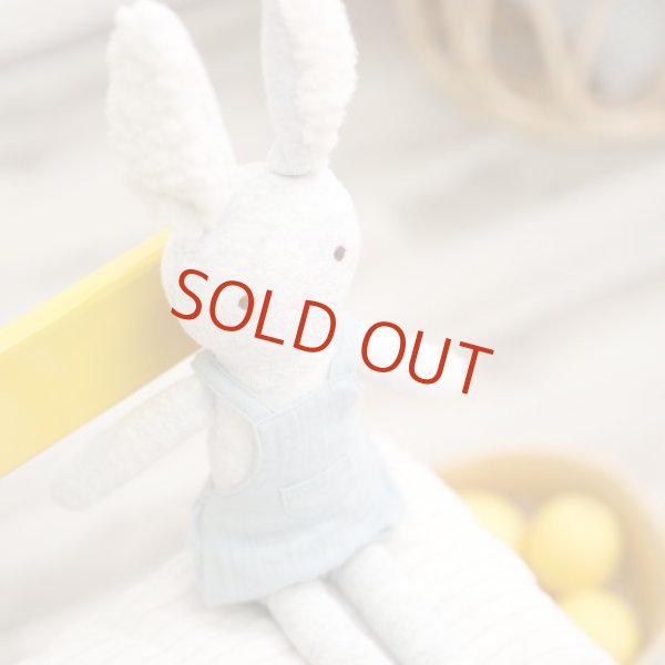 白地にイエローのお花が散りばめられた、シンプルでキュートなバニー。胸元に編み込まれたハートがワンポイントになっています。飽きのこないデザインで、長くお子様に寄り添ってくれます。